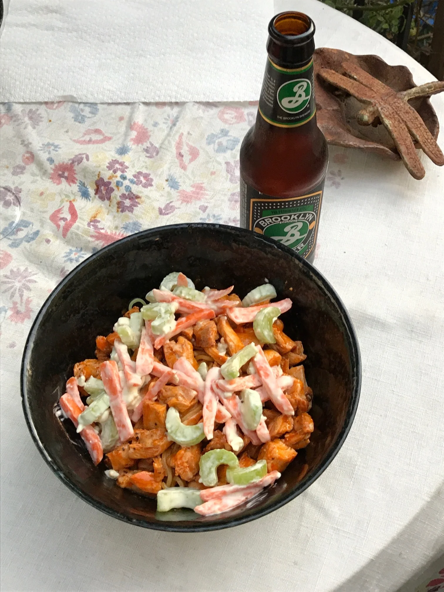 Let chicken rest and then dice and add to hot sauce butter mixture